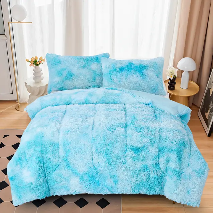 Faux Fur Luxury Filled Plush Youth Blanket with Shams. The blanket is measured at 86'x66', and the two shams are 20'x30'. The front face gives you warmth and elegance, while the micro suede backing, and faux down filling provide extra softness and comfort. Made with 100% EF-Velboa Micro Polyester for extra soft and simple care. Each set is packaged in a clear poly zipper suitcase-style bag.