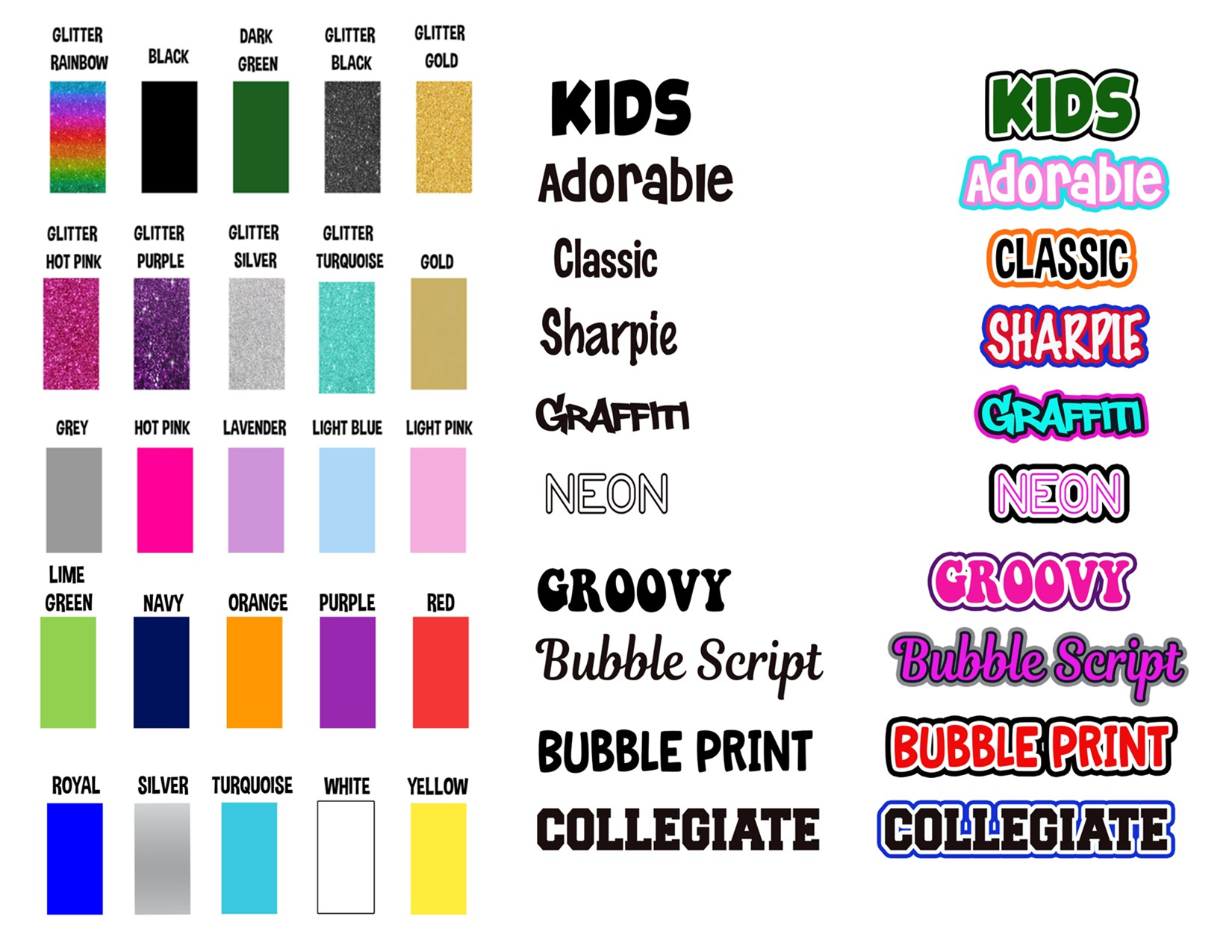 CHOOSE INSIDE COLOR (NOTE IF GLITTER RAINBOW IS ELECTED-THIS MUST BE THE OUTLINE COLOR AS WELL)